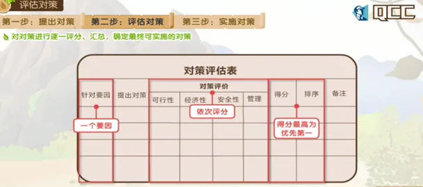 环节三:对对策进行逐一评分、汇总,确定最终可实施的对策